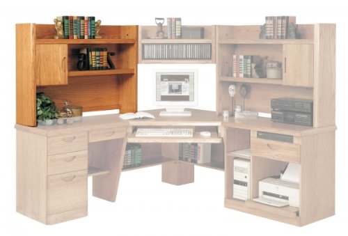 The Waterfall Corner Desk has six separate pieces, each sold separately for a custom office furniture set! See below for individual piece details. The Waterfall collection offers timeless office furniture. Carefully crafted with oak solids and veneers, each piece features a multiple-step hand rubbed lacquer finish, well-defined bull-nose and solid oak moldings and drawer fronts. Premium drawer construction includes smooth operating euro style drawer glides and precision channel joint construction. Left Hand Base: Three utility drawers and one legal/letter file drawer. Corner Desk Base: Keyboard pullout, wire management and two bookshelves in kneehole. Right Hand Base: 10.5w x 24.75h CPU storage with adjustable shelf, power center, pullout printer shelf, utility drawer. Left Hand Hutch: Adjustable shelf, wire management, wooden cabinet. Center Bridge: 36 capacity CD storage rack, fixed shelf. Right Hand Hutch: Adjustable shelf, wire management, wooden cabinet. Assembly level/degree of difficulty: No Assembly Required.